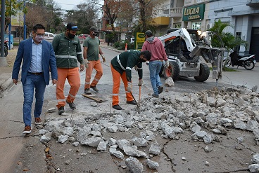 Locales | Gustavo supervisó los trabajos que, por el Programa Integral de Bacheo, ejecuta Resistencia sobre calle Salta del 0 a 200. Este es un tramo de gran circulación vehicular del microcentro y uno de los carriles prioritarios del transporte público de pasajeros modalidad ómnibus.