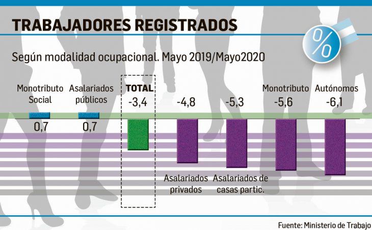 En base a los registros del SIPA, la cantidad de "asalariados del sector privado" se redujo en mayo un 0,1%, una contracción significativamente menor a la observada en abril (-1,7%). Destacan las políticas del Gobierno para mitigar el impacto de la pandemia.