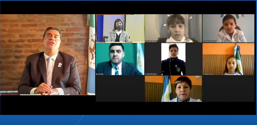 Locales | El acto se realizó de forma virtual, con la presencia de alumnas y alumnos pinedenses. En la localidad el gobierno ejecuta obras por más de 114 millones de pesos que recorrería el gobernador como parte de las actividades que tuvieron que ser suspendidas por la situación epidemiológica.
