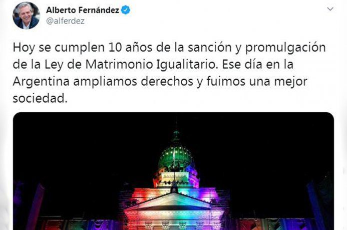 "Ese día en la Argentina ampliamos derechos y fuimos una mejor sociedad", indicó el Presidente, quien recordó a Vilma Ibarra y a Cristina Fernández de Kirchner como motores de su aprobación.