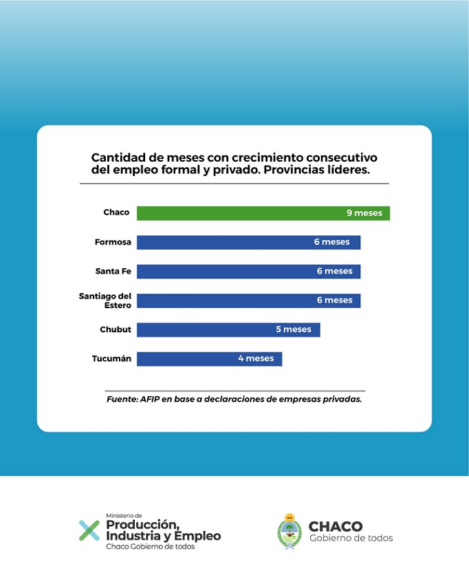 Locales | La provincia registró un crecimiento de la cantidad de personas que se incorporaron al mercado laboral por noveno período mensual consecutivo, liderando al grupo de provincias que continúa con Formosa, Santa Fe y Santiago del Estero (6 meses de crecimiento); Chubut (5 meses); y Tucumán (con cuatro meses seguidos de crecimiento).