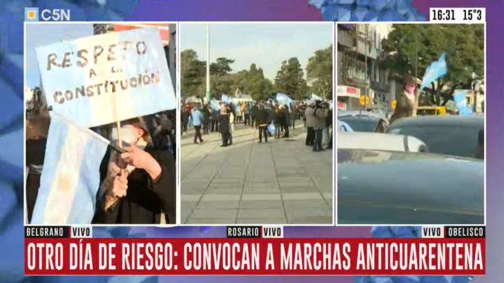Manifestantes se agrupan en la Ciudad de Buenos Aires y otras provincias del país. Cuestionan la cuarentena y la intervención de Vicentin, entre otros puntos.