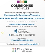 Locales | Este viernes 30 de abril es el último día para que los resistencianos presenten sus listas para la elección de las comisiones vecinales y Resistencia reitera que para ello pueden dirigirse a la Subsecretaría de Relaciones con la Comunidad, en avenida Italia 150, o consultar a los números 362458374 y 3624525176.