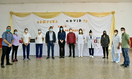Locales | Un equipo de la cartera sanitaria provincial, encabezada por la ministra Paola Benítez, aplicó 60 dosis contra coronavirus a adultos mayores de 65 y 80 años.