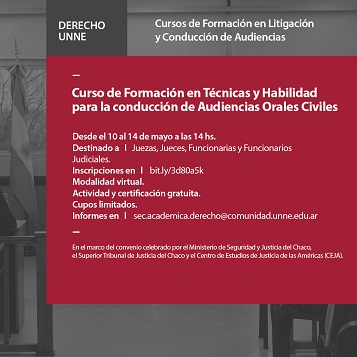 Locales | La Facultad de Derecho y Ciencias Sociales y Políticas de la Universidad Nacional del Nordeste junto a instituciones gubernamentales y del exterior, promueve para el mes que viene cursos gratuitos en modalidad virtual, destinados a Juezas y Jueces, Funcionarias y Funcionarios Judiciales, Abogadas y Abogados del fuero Civil y Comercial de la región.
