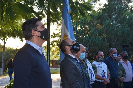 Locales | Gustavo encabezó el acto central por el Día del Veterano y de los Caídos en la Guerra Malvinas y el izamiento del pabellón nacional en el Mástil Mayor. Además, depositó una ofrenda floral sobre la placa que recuerda a los 60 caídos, ubicada en la Plaza 25 de Mayo.
