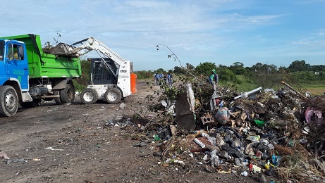Locales | La Ciudad de Resistencia, a través de la Subsecretaria de Emergencia, Defensa Civil y Red Social, desplegó un operativo de erradicación de minibasurales sobre avenida Coronel Falcón al 1100 del barrio Santo Domingo, en inmediaciones de la Laguna Ávalos y del rio Negro.
