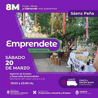 Locales | El evento tendrá lugar de 19 a 23 horas en la Agencia de Empleo y Desarrollo Emprendedor ubicada en Sarmiento 167. Participarán más de 20 emprendedoras locales.