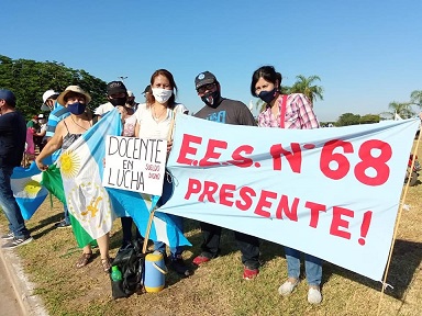 Locales | Convocados por los sindicatos y en medio de otra semana de paro, docentes de toda la provincia se movilizaron hacia puntos clave en distintas rutas del territorio chaqueño. Las concentraciones más importantes se dieron en las inmediaciones al peaje de Makallé, en la rotonda de las rutas 11 y 16 y Sáenz Peña. Reclaman que el gobierno mejore la oferta salarial de 34% como piso de aumento para todo el año y en especial que se incremente el monto del pago de la deuda generada en 2020 con el sector.