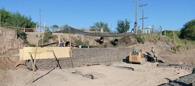 Locales | Las obras de readecuación completa del sistema de defensas y la reparación del sistema de bombeo alcanzan un 85 por ciento en su ejecución. Con una inversión total de 15 millones de pesos beneficiarán a los barrios Mujeres Argentinas, parte la Liguria y la descarga de la laguna Hortensia.