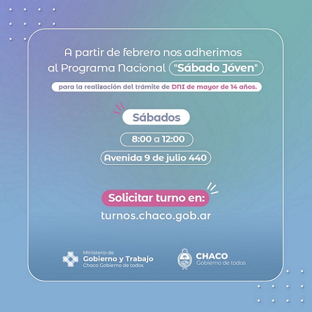 Locales | La iniciativa nacional está destinada a los adolescentes que deban actualizar su DNI. Los interesados deberán inscribirse a través de la página web: turnos.chaco.gob.ar.