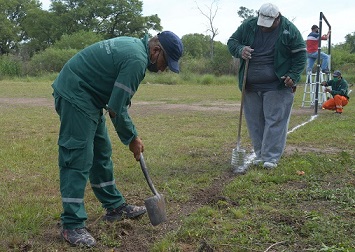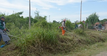 Locales | En el barrio Golf Club se desarrolló un trabajo de saneamiento ambiental para dejar en condiciones los espacios verdes públicos, consistente en el desmalezado y limpieza, en el marco del Plan “Eco Ciudad” que desarrolla Resistencia. Esta tarea es complementaria al programa “Chau Mosquito”, con el retiro de cacharros y fumigación.