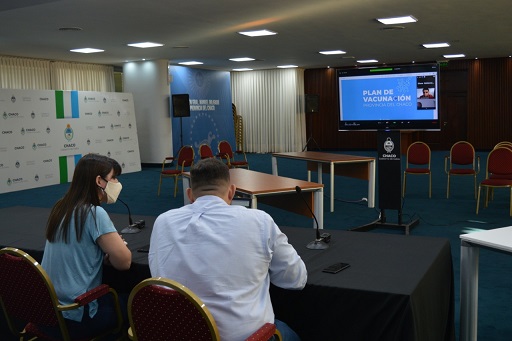 Locales | La ministra de Salud Pública Paola Benítez se reunió este martes por la tarde de manera virtual con intendentes de ocho localidades, para continuar la coordinación de la Campaña de Vacunación Covid-19 en la provincia. Almacenamiento y espacios seguros para implementar la campaña, fueron algunos de los puntos de acuerdo con los intendentes.