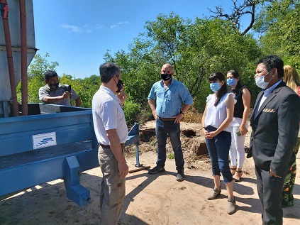 Locales | La vicegobernadora Analía Rach Quiroga y el titular de la Administración Provincial del Agua (APA), Daniel Pegoraro, junto al intendente Zenón Cuellar, verificaron el funcionamiento de la planta potabilizadora móvil colocada por la APA en la laguna El Chorro, ubicada en El Espinillo.