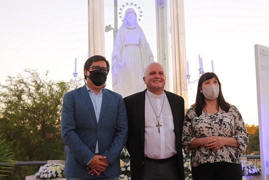 Locales | El intendente, Gustavo Martínez, junto a la diputada Elida Cuesta, al arzobispo Ramón Alfredo Dus, al padre Rafael Del Blanco, y diversas autoridades religiosas de la comunidad, participaron de la solemne salutación a la Inmaculada Concepción de María. La celebración litúrgica, mediante la cual se entonó el himno Akathistos a la Madre de Dios, se realizó en el Paseo Costanero del Domo donde se encuentra la imagen restaurada de la Santa Patrona de la Ciudad.
