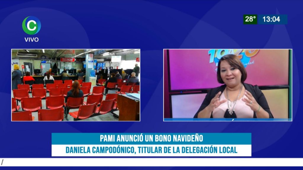 Locales | La delegada del PAMI en Chaco, Daniela Campodónico, dialogó con CIUDAD TV y confirmó que se otorgará un bono navideño de $1500 a 550.000 afiliados destinatarios del Programa Alimentario, casi 50 mil en Chaco, además de otro de $10.000 para centros de jubilados y pensionados.