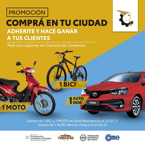 Locales | Con el objeto de impulsar las ventas de diciembre y enero, desde la Cámara de Comercio de Resistencia, invitan a todos los comerciantes socios a participar de la promoción “Comprá en tu ciudad”, una campaña organizada por Federación Económica del Chaco (FEChaco), destinada a la promoción de ventas y fortalecimiento del comercio local pyme para toda la provincia del Chaco.