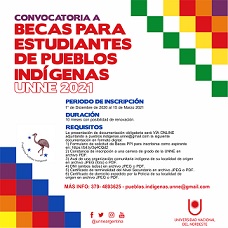 Locales | El Programa Pueblos Indígenas de la Universidad Nacional del Nordeste (PPI-UNNE) tiene entre sus objetivos, lograr la inclusión de jóvenes y adultos indígenas en las Carreras de Grado de la UNNE a través de BECAS Y TUTORÍAS. La inscripción a Becas se realizará vía online y se extenderá desde mañana martes 1° de diciembre de 2020 hasta el 15 de marzo 2021.