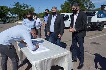 El Secretario de Gobierno, Hugo Acevedo, junto al subsecretario de Transporte, Luis Cabrera, encabezó este lunes por la mañana en el playón del Domo del Centenario, el acto de entrega de nuevas licencias municipales, habilitantes para conductores de taxis y remises; y vehículos de cargas.