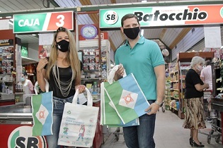 Locales | El programa “Eco Comercios” es una iniciativa de la Fundación Más que impulsa el intendente Gustavo Martínez y de la edil Katia Blanc junto a Expresarte. Promueve el acompañamiento de los supermercados, en este caso Batocchio, a los cuales se les acerca bolsas de friselina reutilizables para que entreguen a los vecinos, de forma gratuita, y reemplacen las de polietileno.