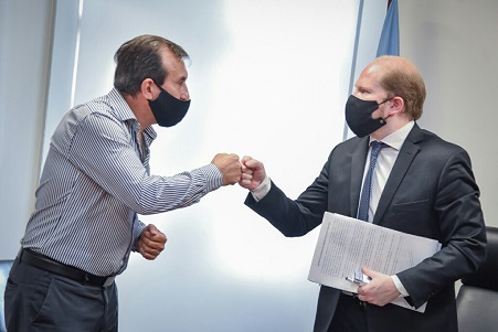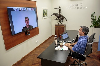 Locales | Junto a 65 intendentes, el gobernador y el ministro del Interior de la Nación analizaron vía teleconferencia la situación de cada municipio beneficiario. El Gobierno nacional invertirá un total de $49.672.373 para reforzar la capacidad de servicio estatal comunal abarcando salud, higiene, transporte vehicular y elementos de oficina, entre otros.