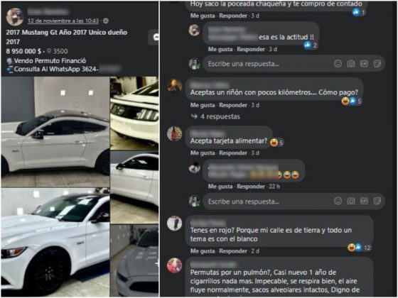 Locales | Un joven de la capital chaqueña utilizó el Market Place de Facebook para poner en venta un auto de alta gama. La publicación generó muchos comentarios en sorna debido al elevado precio del vehículo. “Hoy saco la Poceada Chaqueña y te compro de contado”, fue una de las respuestas.