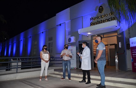 Con la presencia del intendente, Gustavo Martínez, la ciudad de Resistencia conmemoró el Día Mundial de la Lucha contra la Diabetes iluminando con luz azul la fachada de la comuna.