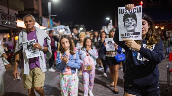 La concentración fue en la zona céntrica de la ciudad, donde los convocados llevaron carteles con la cara del joven de 19 años. "Todos son culpables", señalaron.