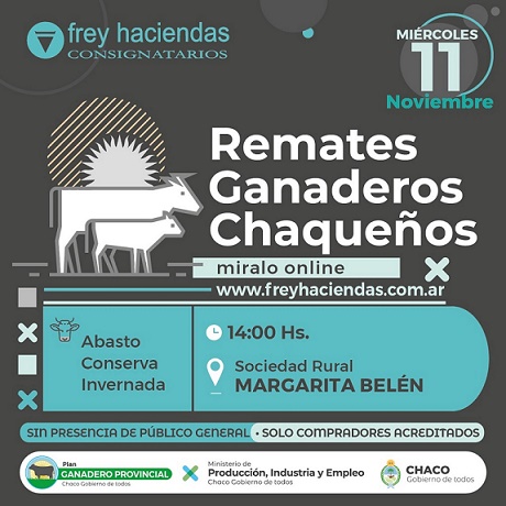 Locales | Se realizará bajo modalidad virtual sin presencia de público en general en el predio ferial y contará con transmisión en tiempo real por Internet a través de la web www.freyhaciendas.com.ar. Saldrán a pista animales con destino a conserva, invernada y abasto.