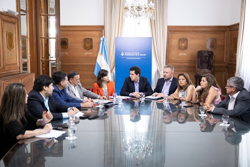 Nacionales | En el marco de las reuniones que viene manteniendo con los gobernadores para articular proyectos entre el Gobierno nacional y las provincias, el ministro del Interior, Wado de Pedro, recibió hoy en Casa Rosada a los mandatarios de Tierra del Fuego, Gustavo Melella; de Chubut, Mariano Arcioni; de Entre Ríos, Gustavo Bordet; de Jujuy, Gerardo Morales; y de La Rioja, Ricardo Quintela.