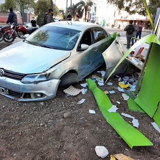 Locales | El conductor de un vehículo, un joven de 22 años, perdió el control de su vehículo este domingo por la mañana, subió la vereda e impactó contra un puesto de venta de comidas al paso. Si bien hubo cuantiosas pérdidas materiales, no hubo heridos por el hecho.