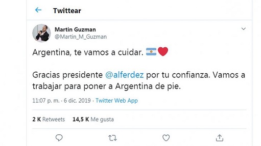 Nacionales | Los flamantes integrantes del gabinete que acompañará al presidente electo Alberto Fernández desde el martes próximo agradecieron sus nombramientos y se comprometieron a trabajar para poner a la Argentina "de pie", a través de la red social Twitter, luego de que se oficializara quienes serán los colaboradores del nuevo mandatario en los próximos cuatro años.