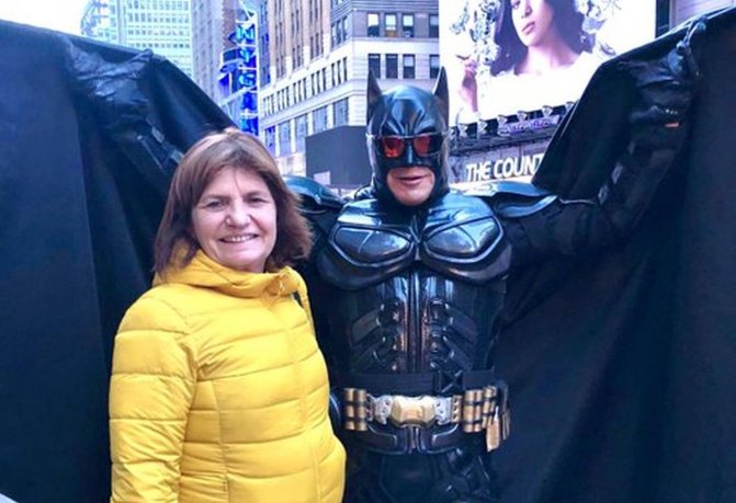 Nacionales | El hombre, que trabaja en la tradicional intersección neoyorkina, es partidario del oficialismo y le aseguró a la ministra que va a seguir “bancando el cambio” desde esa ciudad.