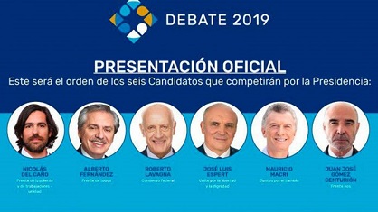 Nacionales | Por primera vez en la historia, los seis candidatos presidenciales participarán este domingo de un debate obligatorio, luego de que se sancionara la ley que así lo establece. La discusión será a partir de las 21 en la Universidad Nacional del Litoral - en Santa Fe - y la transmitirá la TV Pública, aunque todos los canales podrán tomar la señal y retransmitirla gratis.