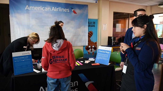 Nacionales | Más de 20 niños y sus madres disfrutaron de la recreación de la experiencia de vuelo, llamado "vuelo fantasía". Desde el check-in, migraciones para revisión de pasaportes y embarque, hasta el servicio de comidas y entretenimiento a bordo a cargo de los auxiliares de vuelo de American Airlines, finalizando con la simulación del aterrizaje y desembarque.