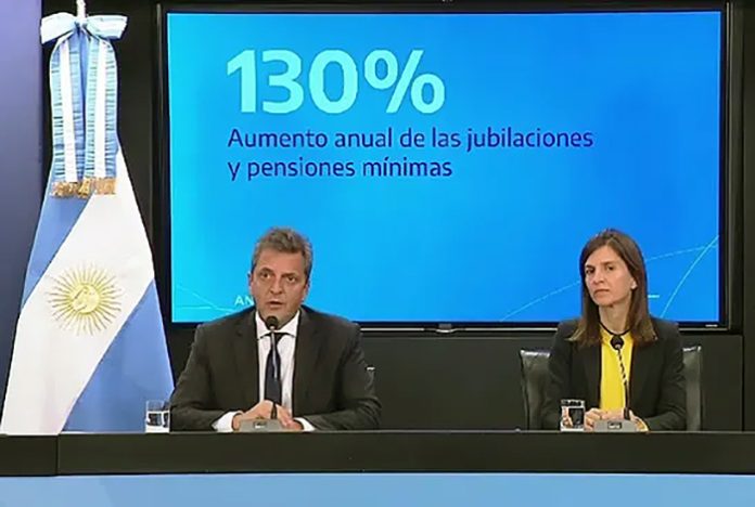 Nacionales | La medida fue anunciada por el ministro de Economía, Sergio Massa, y la directora ejecutiva de la Administración Nacional de la Seguridad Social (ANSES) Fernanda Raverta. Además, quienes perciban una jubilación o pensión de hasta dos haberes mínimos también cobrarán un proporcional del refuerzo de hasta $ 5.000.
