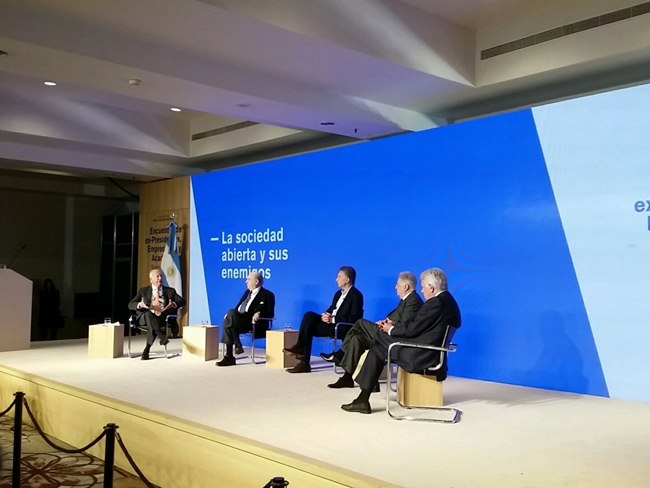 Nacionales | El presidente Mauricio Macri destacó la necesidad de "fortalecernos en materia de instituciones", al dirigirse a ex presidentes de la región, en un encuentro organizado por la Fundación Círculo de Montevideo.