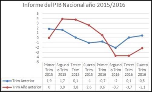 Nacionales | Según el Informe el Indec el PIB del cuarto trimestre del año 2016 indica una caída del -2,1% en su comparación con el mismo periodo del año anterior Autor Lic Miguel A Aquino