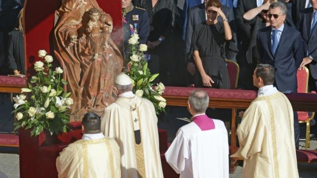 Nacionales | El presidente Mauricio Macri saludó este domingo al papa Francisco durante la canonización del "cura gaucho" José Gabriel Brochero en la capilla de la Piedad de la Basílica de San Pedro junto a su mujer Juliana Awada.
