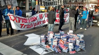 Nacionales | Tras el "Frutazo" y el "Verdurazo", trabajadores de una cooperativa gráfica realizaron la protesta y repartieron 20 mil cuadernos escolares realizados por ellos. Piden a diputados bonaerenses la expropiación de la fábrica.