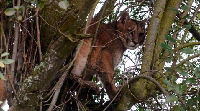 Nacionales | Habían escuchado ladrar a sus perros pero jamás imaginaron lo que había en su patio. Gran sorpresa se llevó una familia cuando vio a un puma sobre uno de los árboles de su casa en Bariloche.