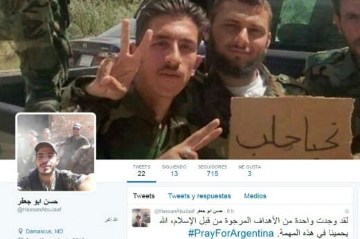 Nacionales | Dos jóvenes de 21 años que a través de la cuenta de twitter @hassanabujaaf difundieron mensajes en árabe donde mencionaron el presidente bajo el hashtag "pray for argentina" fueron detenidos en la madrugada de este sábado, en un domicilio del barrio de chacarita.