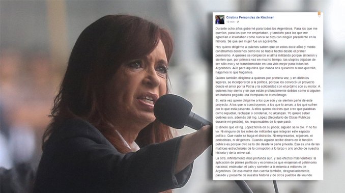 Nacionales | La ex presidenta Cristina Kirchner se refirió este jueves vía Facebook al caso José López, el ex secretario de Obras quien fue detenido cuando arrojaba bolsas con millones de dólares adentro de un monasterio, y apuntó contra el sector privado.