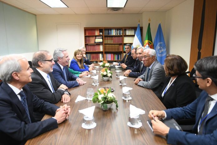Nacionales | El presidente Alberto Fernández mantuvo este lunes una reunión en Nueva York con el primer ministro de Portugal, António Costa, junto a quien reafirmó el interés mutuo de fortalecer la cooperación bilateral y la integración regional. Hablaron sobre la importancia de profundizar el diálogo interregional entre América Latina y Europa, además de la preocupación global por la guerra entre Ucrania y Rusia.