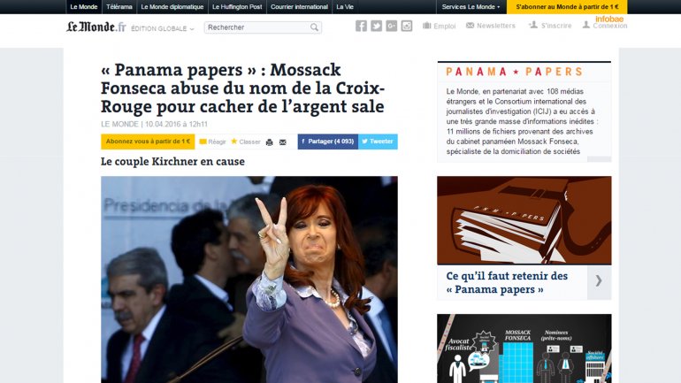 Nacionales | El diario francés revela que Mossack Fonseca ocultaba las offshores de sus clientes detrás de fundaciones humanitarias. Cita como ejemplo a Aldyne Ltd. y Garins Ltd., en Seychelles, "destino del botín del clan Kirchner"