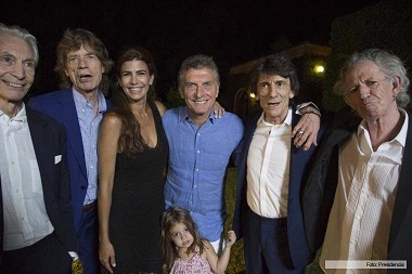 Nacionales | El presidente Mauricio Macri recibió esta noche en un encuentro privado a los integrantes de la banda británica de rock The Rolling Stones en su quinta particular 'Los Abrojos'.