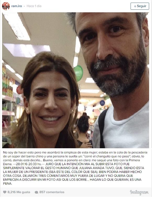 Nacionales | Ramiro hacía las compras como todos los días cuando vio a la primera dama en la fila de la pescadería. Dio detalles del encuentro en Instagram.
