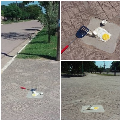 Nacionales | Mientras la sensación térmica superaba los 50 grados, el intendente de la localidad santiagueña de Pozo Hondo, Claudio Nicolau, realizó el sábado la llamativa prueba de freir un huevo en la vereda de la plaza principal del pueblo.