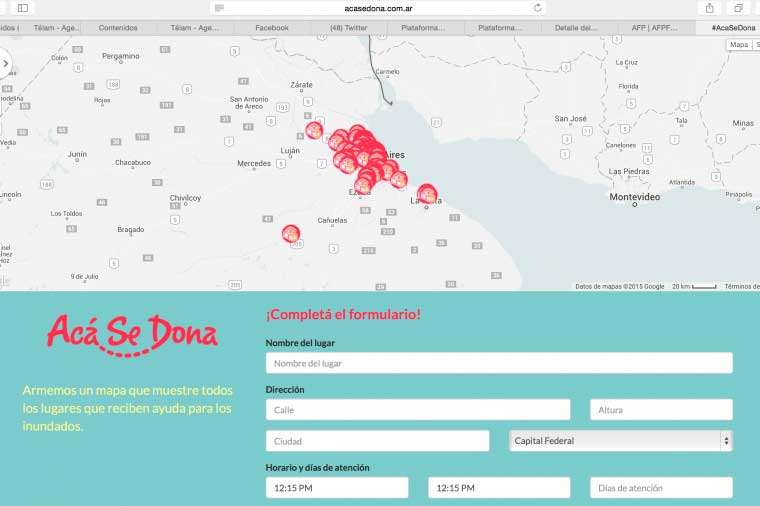 Nacionales | El mapa colaborativo online muestra información sobre centros que reciben donaciones para los inundados permite agregar información sobre colegios, iglesias, universidades o clubes de barrio.