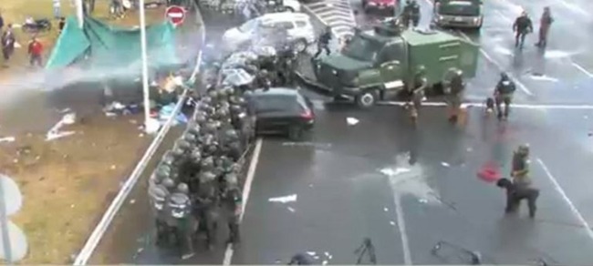Nacionales | Los uniformados desplazaron a los trabajadores de la empresa avícola Cresta Roja que se encontraban realizando un corte parcial en la Autopista del ingreso al Aeropuerto.